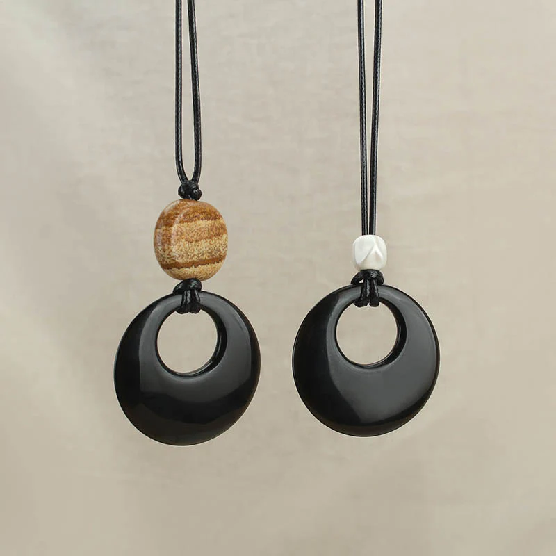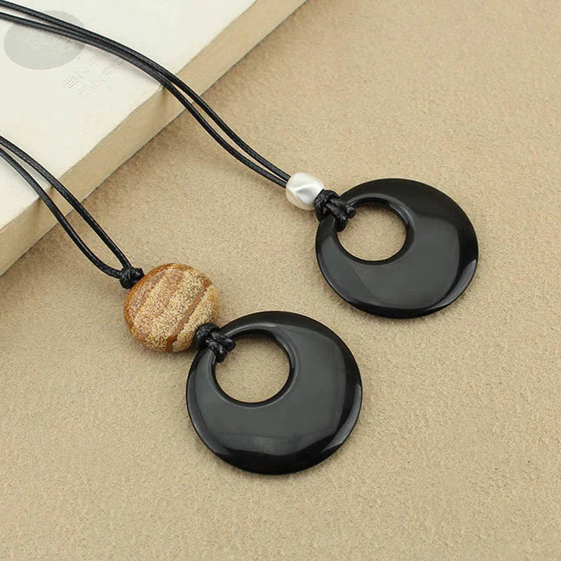 Black Obsidian and Picture Stone Necklace combines black obsidian, glass-like material, picture stone, and copper in a meaningful design. The black obsidian provides grounding and protection, while the glass-like material and picture stone represent clarity and achievement. The copper accents bring a bit of warmth and balance. This necklace encourages spiritual development and harmony, reminding you of your inner strength and the potential for change.