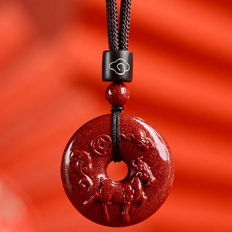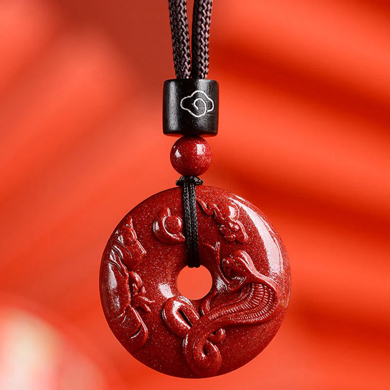 Cinnabar Peace Buckle Necklace Pendant showcases a cinnabar peace buckle engraved with twelve zodiac symbols. Cinnabar is well - known for its life - giving energy and spiritual safeguarding. The circular design represents unity and balance. Meticulously crafted, this pendant provides emotional steadiness and a stronger link to cultural traditions, making it a significant item for personal development and inner calm.