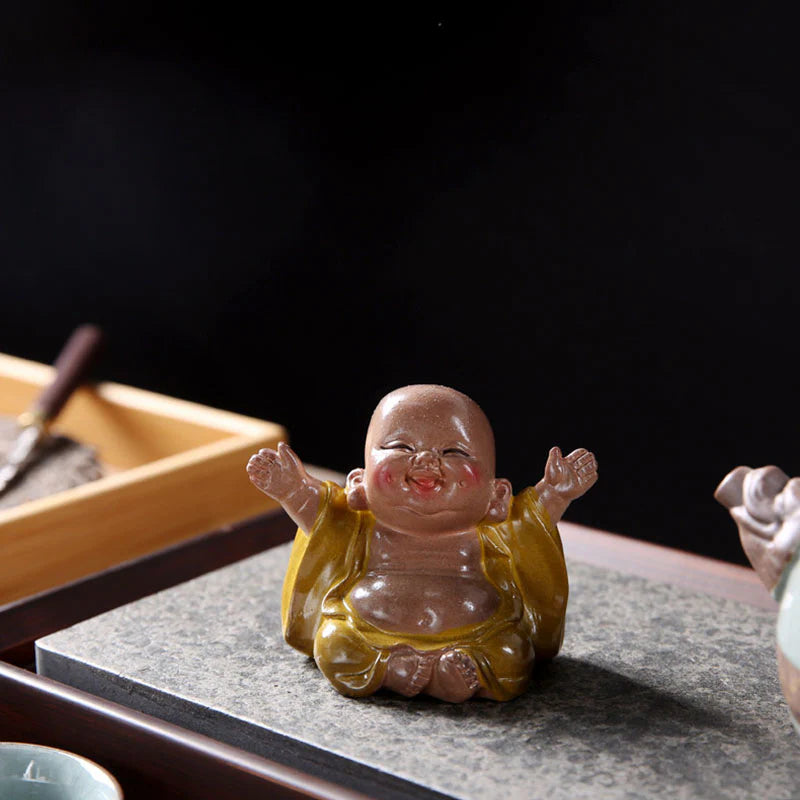 This color-changing resin tea pet in the shape of a laughing Buddha is a wonderful addition to your home. It brings joy and prosperity. As it changes color with the heat of the tea, it's a fun way to remind you to embrace happiness and welcome wealth and positive energy into your life. The laughing Buddha represents contentment, abundance, and good luck, making this figurine a meaningful decoration that can enhance the warmth and atmosphere of your living space.