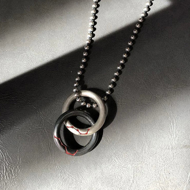The Qiankun hoop, also called the Yin - Yang Ring, consists of two connected rings that can be rotated in hand. It symbolizes the \"cycle of Yin and Yang\". The two rings, one black and one white, represent Yin and Yang respectively.
