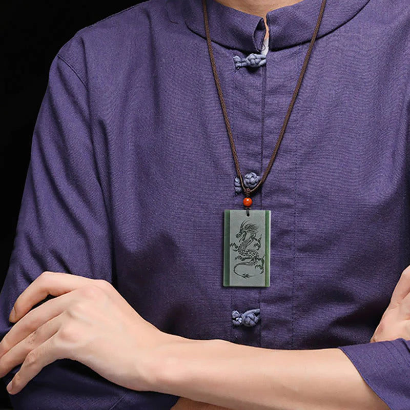 Embark on a journey of self-discovery and success with this cyan jade dragon engraved necklace pendant. It blends the vibrant energy of cyan jade with the auspiciousness of the dragon, which stands for strength, luck, and prosperity. Cyan jade is known for its healing qualities, fostering harmony, calmness, and mental clarity. This pendant is not just a beautiful adornment but also a powerful charm for attracting positive vibes and uncovering one's latent talents.