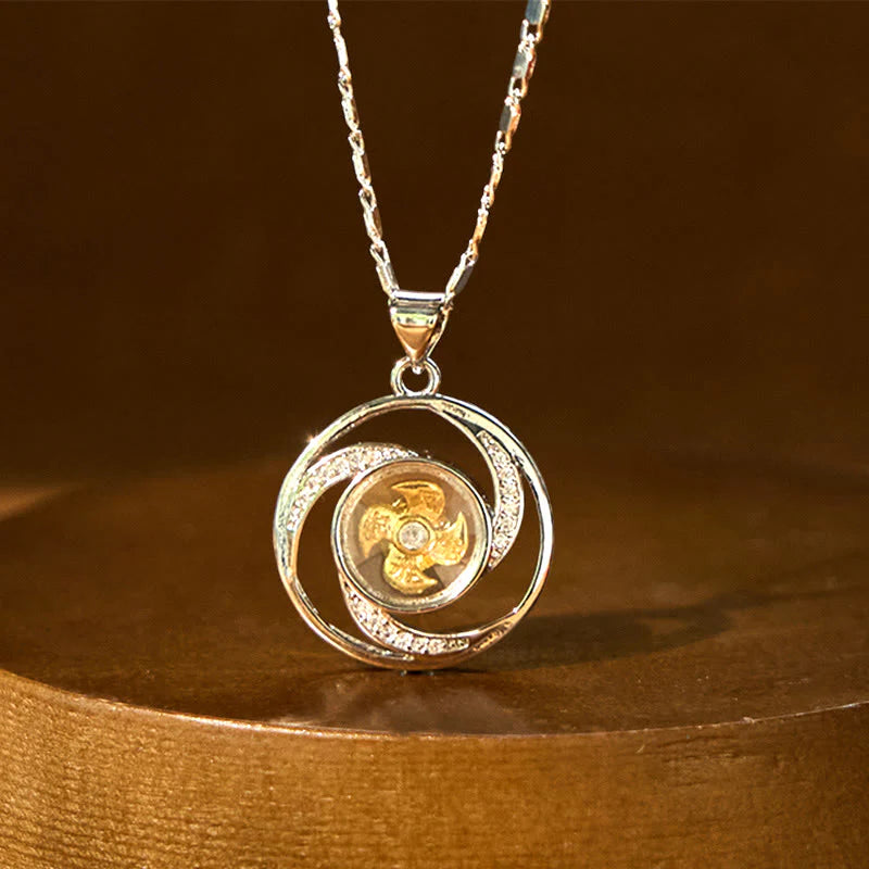 Gold-plated copper rotatable necklace pendant showcases a circular windmill design made of gold-plated copper. The rotatable part represents movement and advancement, and the delicate details add an air of elegance. This pendant is designed to draw in luck and success, combining aesthetic charm with meaningful symbolism, making it a considerate and spiritual accessory for anyone who wears it.