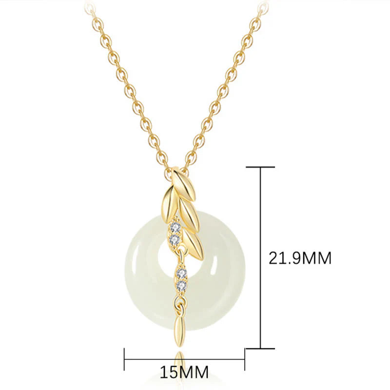 Necklace with a wheat-shaped pendant crafted from high-quality jade, accented with zircon. The wheat stands for prosperity and plenty, while the jade provides a sense of stability. The zircon adds a gentle glimmer, enriching the pendant's significance, making it an ideal symbol of good luck, strength, and continuous development.