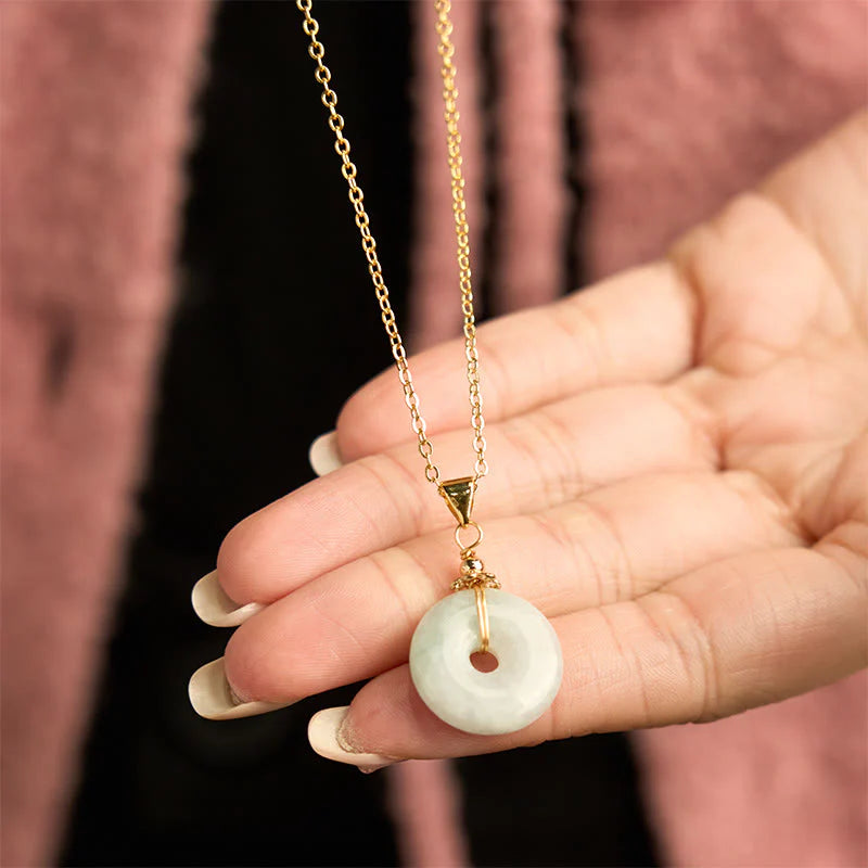 Jade Peace Buckle Necklace Pendant features a symbolic peace buckle made from real jade, signifying harmony and balance. The smooth circular design is thought to bestow protection and positive energy upon the wearer. Crafted with high - quality workmanship, this pendant represents a timeless symbol of peace, providing both physical comfort and spiritual meaning as a meaningful accessory.