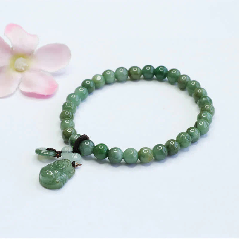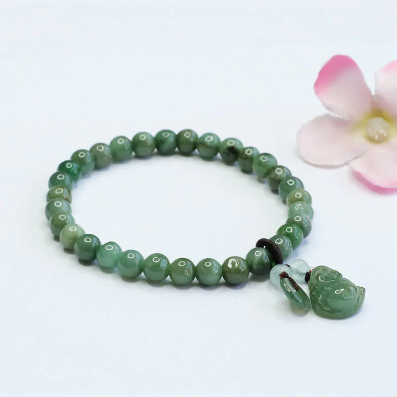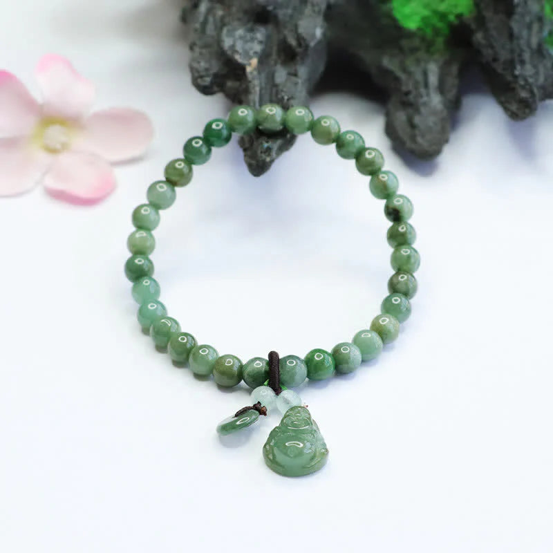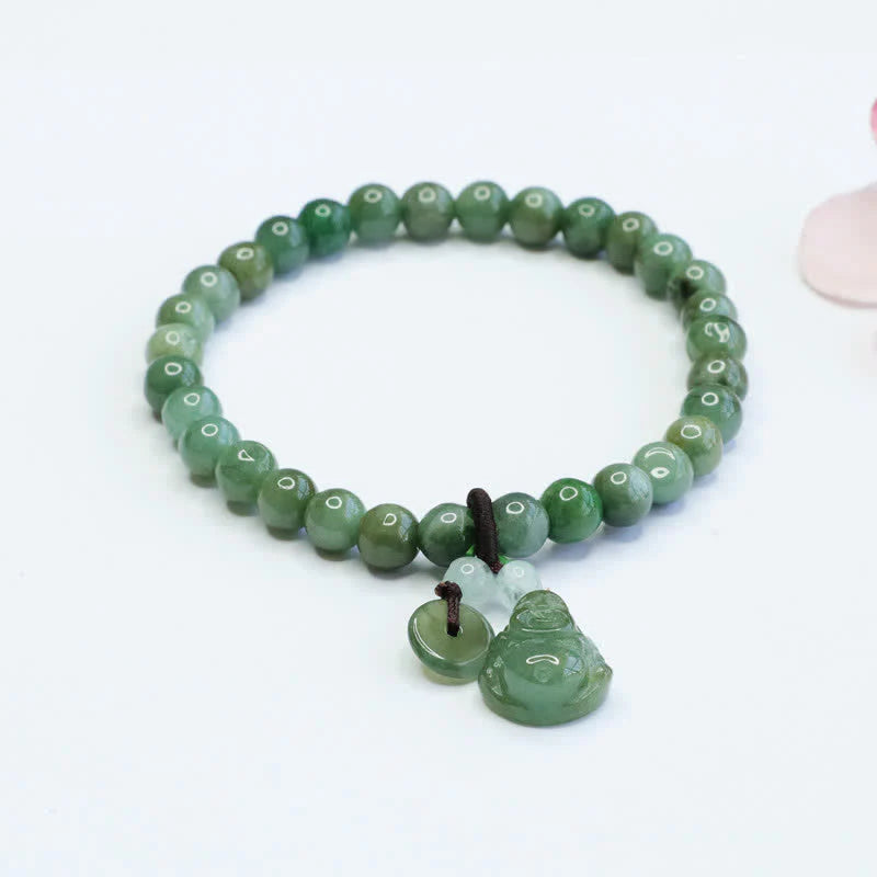 A bracelet featuring cyan jade beads and a laughing Buddha charm is an excellent healing accessory. It brings positive energy and good luck. The calming properties of cyan jade can bring peace and balance to your life. Get one today and feel the power of this beautiful healing bracelet.