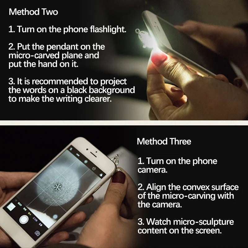 2. Position the pendant on the micro - carved plane and place your hand over it.