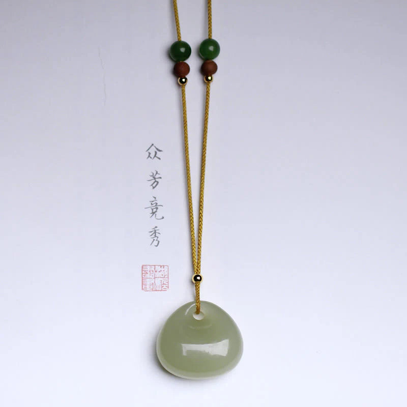 Embrace prosperity and natural charm with this pendant. Made from genuine Hetian jade, it embodies the essence of prosperity and positive energy. Wear this meaningful piece to enhance your presence and attract good fortune while enjoying the elegant design.