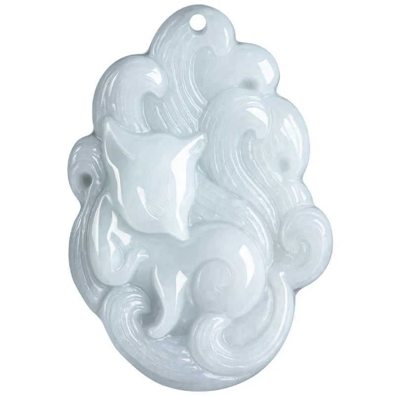 Natural Jade Nine-Tailed Fox Necklace Pendant showcases a finely crafted jade pendant, signifying good luck and protection. The nine-tailed fox is a significant symbol in many cultures, standing for wisdom, change, and the capacity to repel negative forces. This pendant makes a meaningful gift, thought to bring luck and safeguard the wearer.