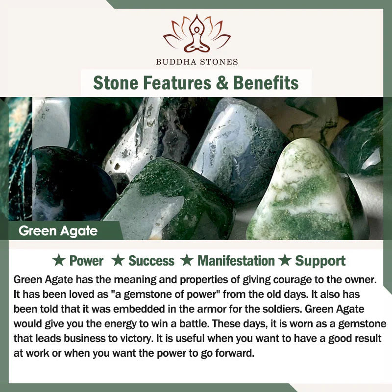 Green agate is regarded as the stone of longevity and is thought to have a positive impact on the mind and spirit, clearing the mind of negative thoughts and distractions.