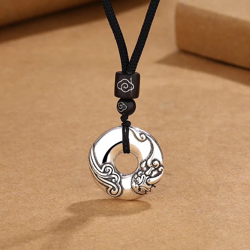 The Peace Buckle, called \"Ping An Kou\" in Chinese, is a classic traditional jewelry. It symbolizes peace. The outer ring is round, representing the vast world, and the inner circle is also round, symbolizing inner peace. Its shape, a large circle containing a small circle, represents people's tolerance and generosity. It looks like a copper coin, meaning money and fortune will come from all directions. Its smooth surface means everything will be perfect and the family will be happy. Nowadays, it's very popular among people of all classes as an auspicious item.