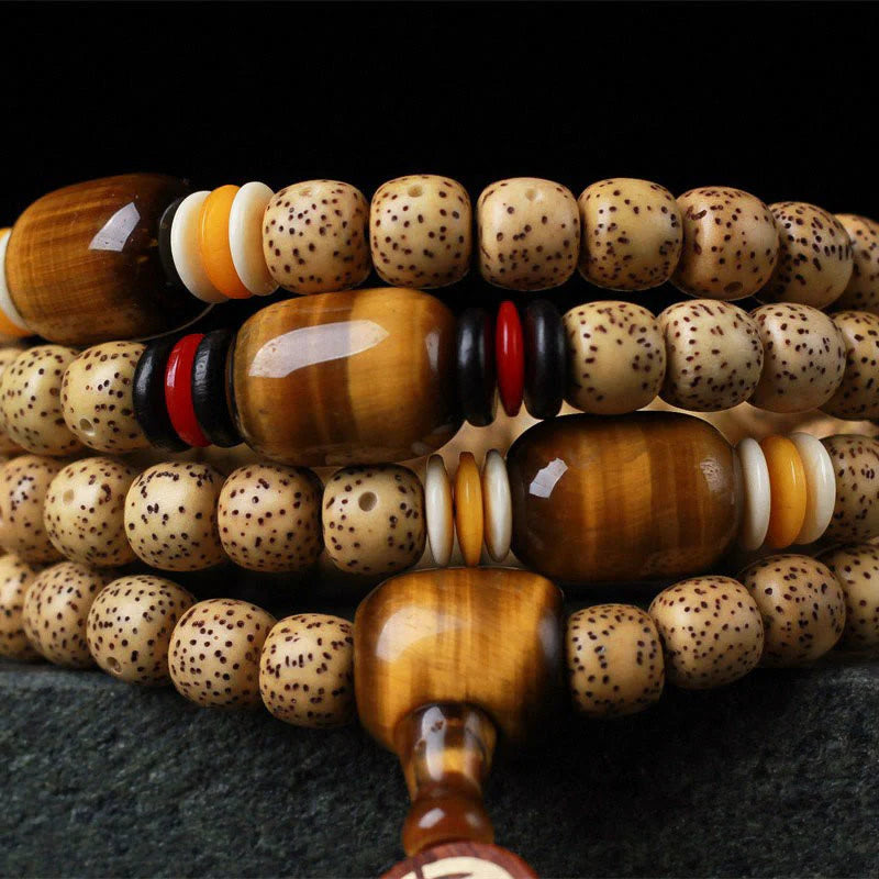 108 Mala Beads bracelet combines the spiritual significance of 108 Bodhi seeds with the protective energy of Topaz and the Fu character. This bracelet symbolizes peace, protection, and spiritual growth, making it a meaningful tool for meditation and mindfulness practices. The inclusion of the Fu character further enhances its power to attract good fortune and harmony.