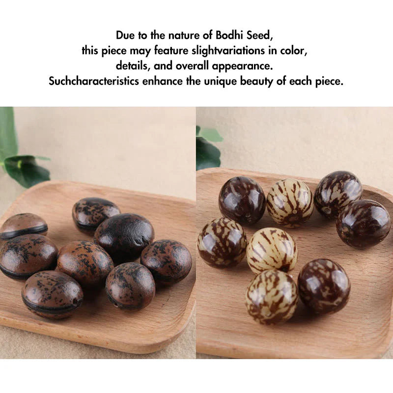 Bodhi in sanskrit translates to “enlightened” or "awakenened," therefore the bodhi seed means “enlightened seed” . As an “enlightened” seed, many practitioners wear the bodhi seeds during their meditation practices to ultimately reach enlightenment.Bodhi is also a term in Buddhism to reflect a Buddha’s understanding of the true nature of things.These dark-speckled seed beads have special meaning for all seekers of divine wisdom.