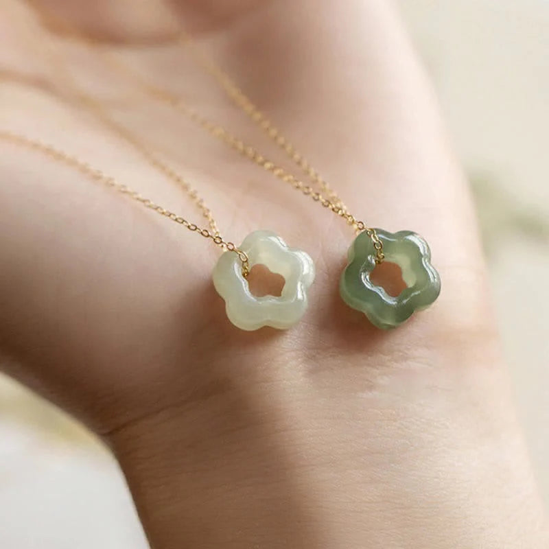 The Dainty Hetian Jade Cyan Jade Luck Floral Charm Necklace Pendant is a delicate and beautiful piece of jewelry made from cyan-colored Hetian jade. The pendant features a lucky floral charm design, making it an ideal accessory for adding elegance and charm to any outfit.