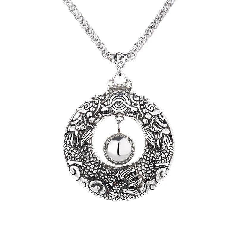 Drawing inspiration from the revered Chinese dragon, the Buddha Stones pendant showcases two intricately crafted dragons intertwined in a playful dance around a bead. Symbolizing good luck, strength, and the robust Yang energy, this copper pendant is a powerful emblem of protection and success. Its design reflects not just the might of the dragon, but also its role in bringing balance and auspiciousness. A timeless piece, it resonates with both heritage and harmony.