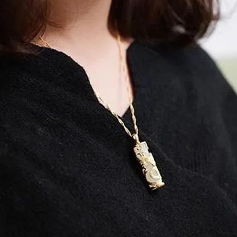 The Jade Dragon Phoenix Copper Blessing Harmony Necklace Pendant features a beautiful design of the dragon or phoenix, symbols of power and balance, on a green jade stone. The pendant is made of copper and is perfect for those who seek harmony and blessings in life.