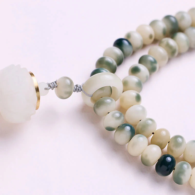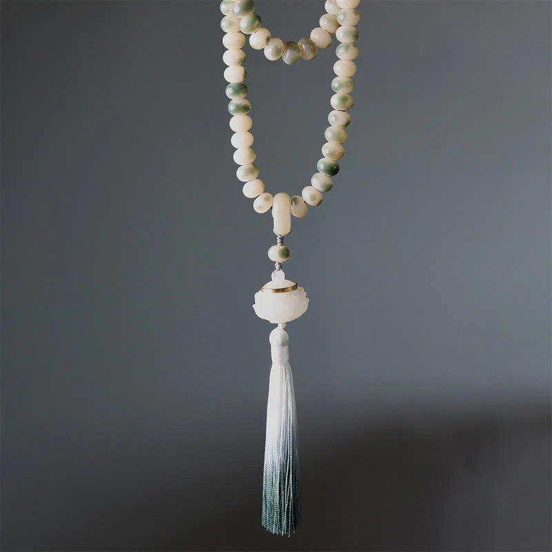 Journey into wisdom with our Natural 108 Mala Bodhi Seed Bracelet from Buddha Stones. Each bead embodies the essence of enlightenment, while the lotus engravings and tassel symbolize inner growth and spiritual awakening. This bracelet serves as a sacred tool for meditation, guiding you towards deeper insights and understanding. Wear it to cultivate wisdom, connect with your higher self, and embrace a path of profound knowledge.