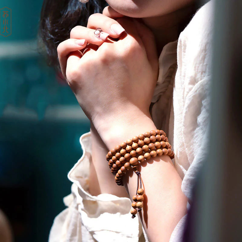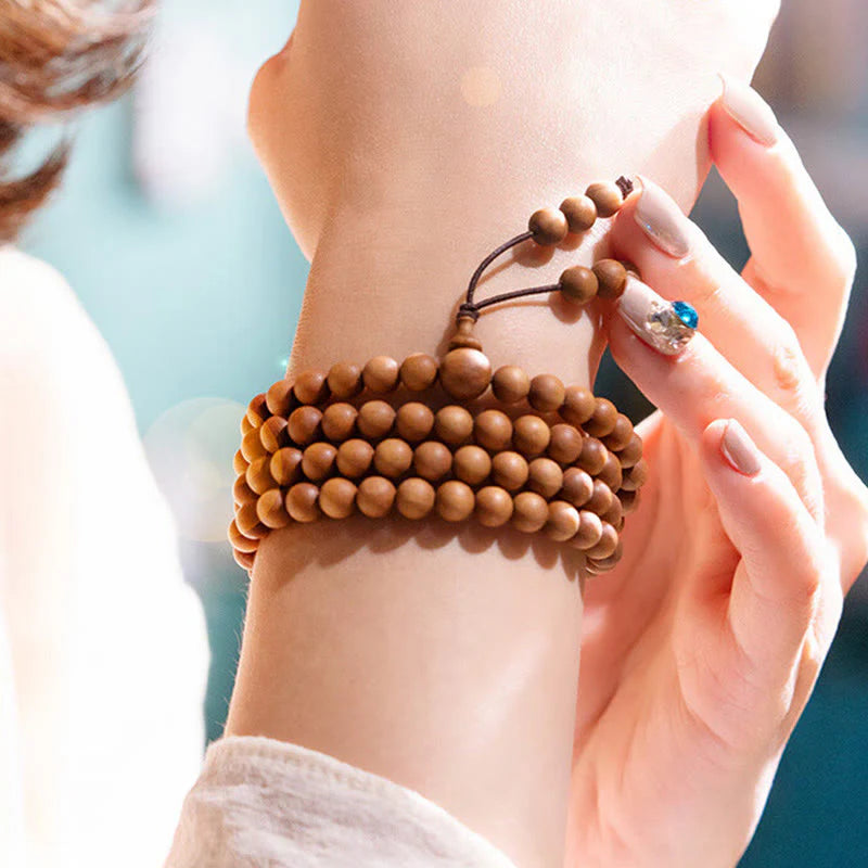 Sandalwood Mala Bracelet is made from high - quality sandalwood beads sourced from a well - known region. Renowned for its calming and therapeutic qualities, this bracelet facilitates spiritual clarity and inner tranquility. Each sandalwood bead symbolizes serenity and mindfulness, making it ideal for meditation or a mindful lifestyle. Its natural fragrance enhances relaxation, helping to establish a peaceful and harmonious environment.
