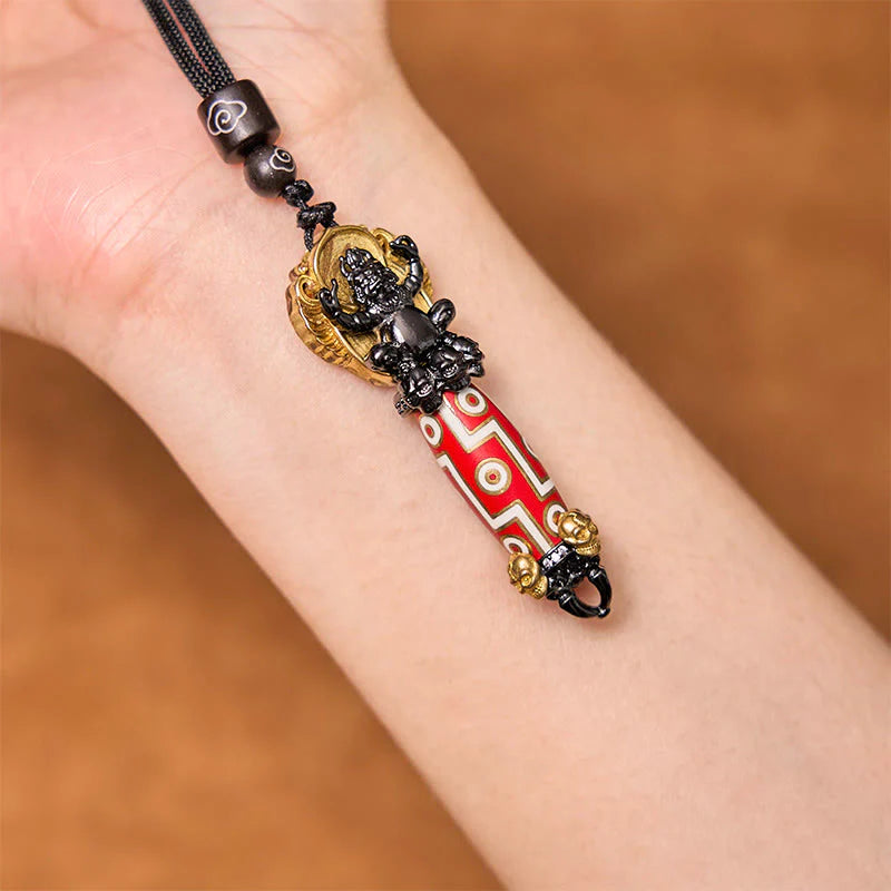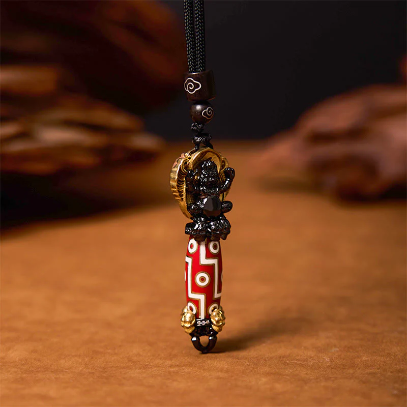 Tibet Dzi Bead Skull Pendant Necklace features a Dzi bead with symbolic skull accents on both sides, representing wisdom and the impermanence of life. The necklace incorporates the sacred Om Mani Padme Hum mantra, helping to enhance inner peace and spiritual stability. The Dzi bead is believed to offer protective energy, while the skulls symbolize transformation, inspiring self-awareness. This piece serves as a constant reminder of resilience.