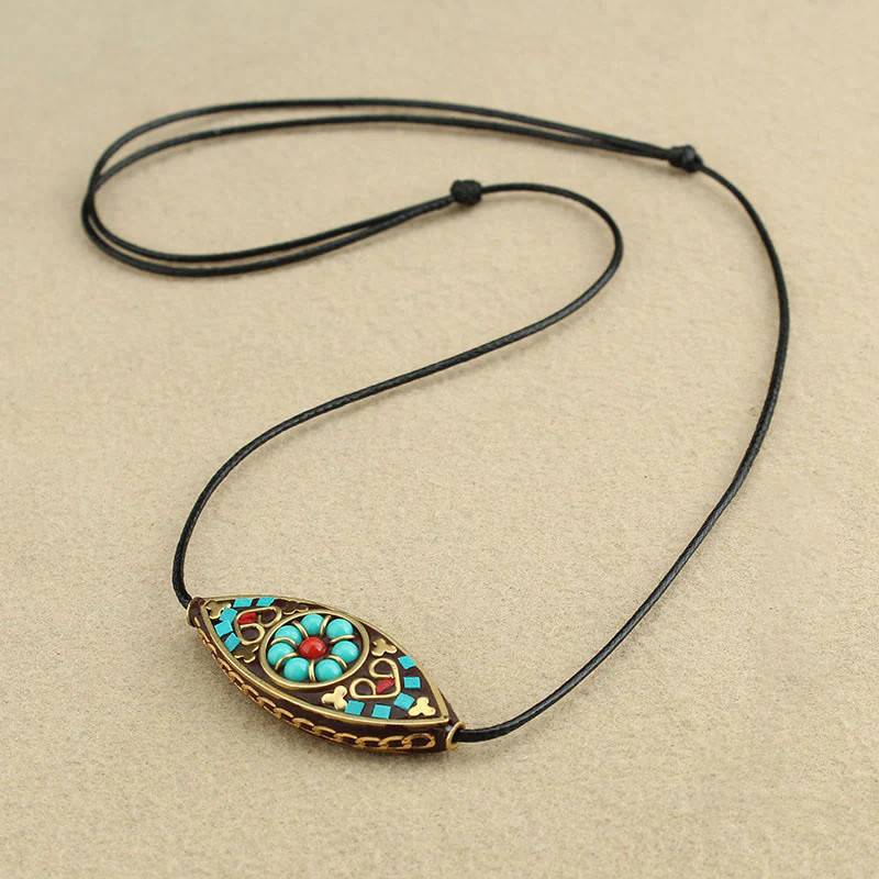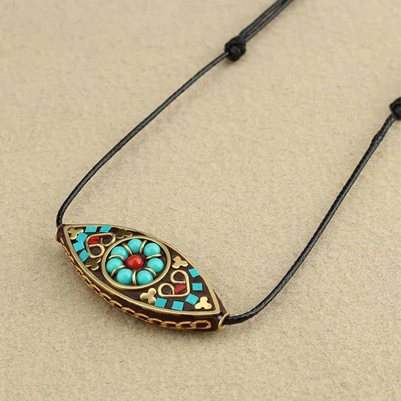 Explore the power of protection and peace with this Tibet Turquoise Marquise Pattern Necklace Pendant. Crafted from turquoise, known for its purifying, wise, and balancing properties, this pendant activates and balances the throat chakra. It enables you to express your inner wisdom and truth, while fostering self-acceptance and positive thoughts. Wear it to harness strength, embrace peace, and adorn yourself with the energies of protection and harmony.