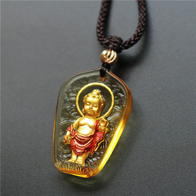 Discover the enduring charm of the Buddha-themed pendant, meticulously crafted from Liuli crystal - a form of art with a history tracing back to the 11th century BC. Each pendant, boasting vivid colors and a distinct design, showcases outstanding craftsmanship and a hint of good fortune. It features the symbol of Buddha, emanating compassion, tranquility, and mindfulness. This pendant is not merely an accessory; it serves as a symbol of inner peace and limitless prosperity.