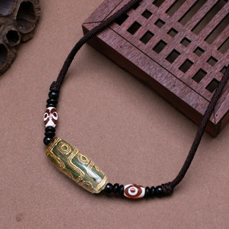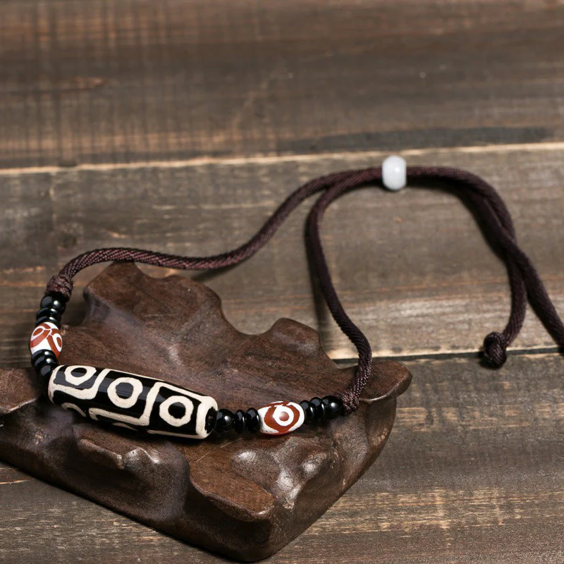 Dzi beads are a kind of stone beads of unknown origin, often worn as necklaces or bracelets. They are precious jewelry in Tibetan culture and are regarded as protective amulets. It is believed that these beads can attract local guardians, dharma protectors, deities, or even beneficial spirits, ancestors, or bodhisattvas. In Tibetan culture, dzi beads are always treated with reverence. The Nine - Eye Dzi Bead symbolizes the nine planets, encompassing the universe's activities and human wisdom. Among all dzi beads, the nine - eyed ones are the most sought - after, bringing all sorts of luck and blessings, such as protection, good health, purification of negative energy, and enhancement of intelligence and wisdom. It also aids investors in successfully developing new ideas to amass wealth.