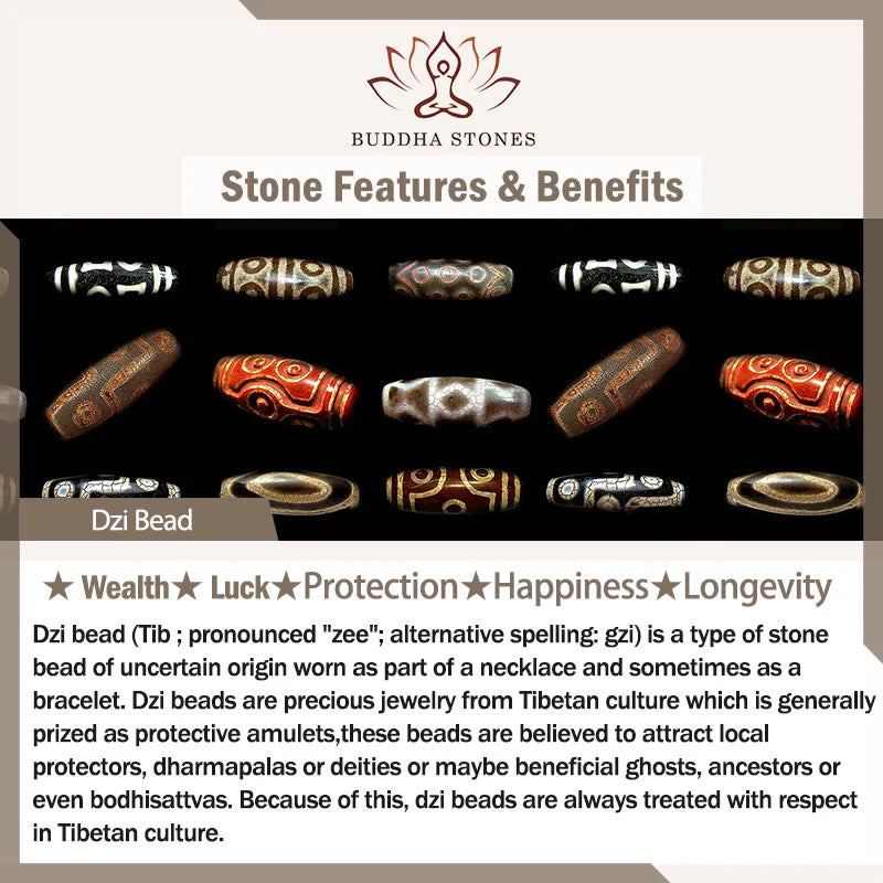 Dzi beads are a type of stone bead of unknown origin, often worn as part of a necklace or bracelet. In Tibetan culture, they are precious jewelry and are considered protective amulets, believed to attract protectors, deities, or beneficial spirits. The Nine - Eye Dzi Bead, symbolizing the nine planets, encompasses the universe's activity and human wisdom. It is very popular and is said to bring various forms of luck, protection, good health, purify negative energy, and expand intelligence and wisdom. It can also assist investors in developing new ideas and generating wealth.
