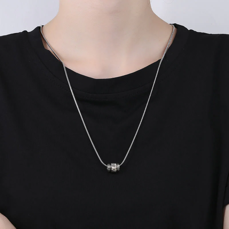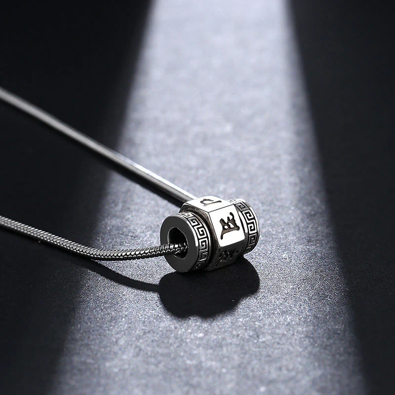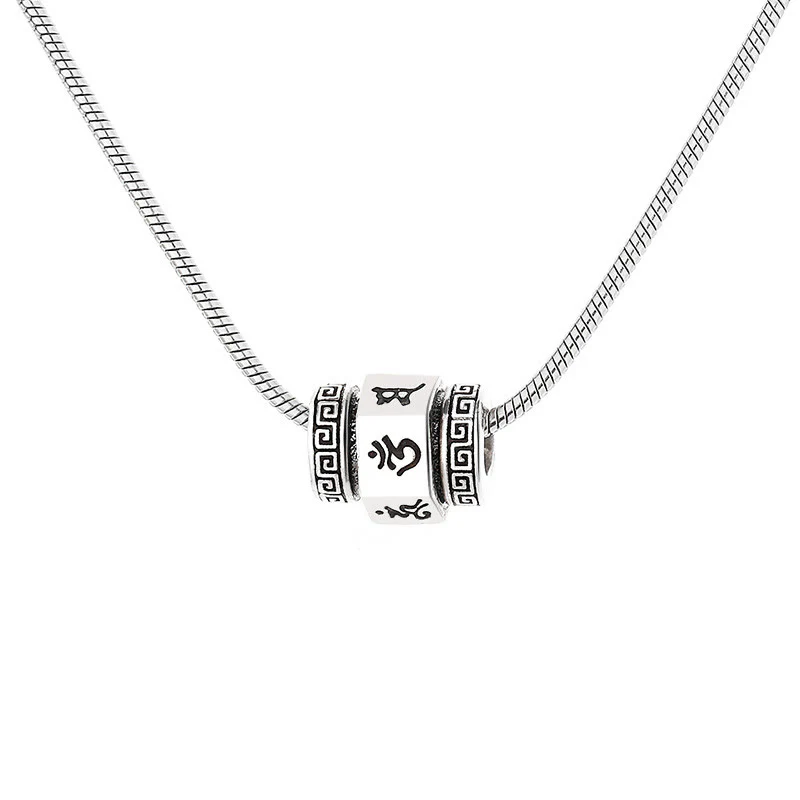 Experience the eternal charm of a Tibetan necklace with a rotatable pendant inscribed with the sacred mantra 'Om Mani Padme Hum'. This powerful chant links you to the universe, representing love, wisdom, and the path to enlightenment. The pendant is a daily reminder of spiritual unity, purity, and the pursuit of inner peace, making it a precious accessory for those on a spiritual journey and believers.
