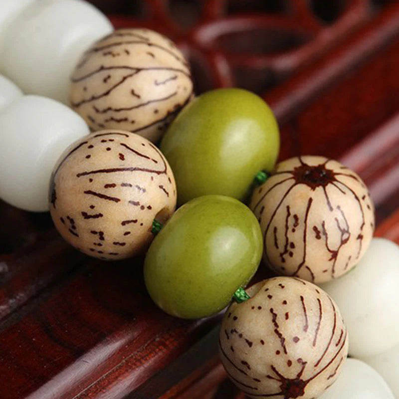 White Jade Bodhi Lotus Mala Harmony Jewelry is a beautiful and unique item, carefully hand - crafted. It is made from high - quality materials, including bodhi seeds and a lotus flower pendant.